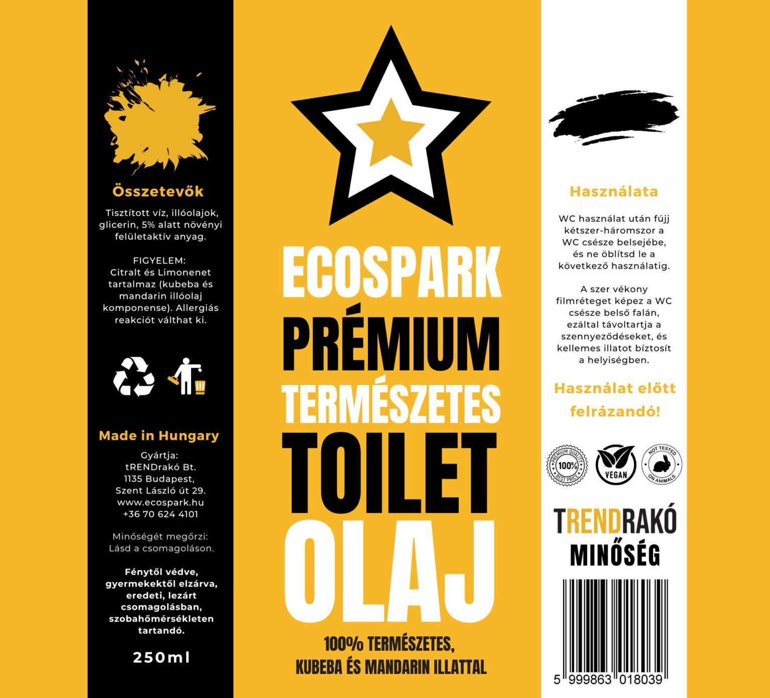 Az EcoSpark prémium 100%-ban természetes toilet olaj olyan környezetbarát, magyar fejlesztésű és gyártású WC higiéniai termék, amely vékony filmréteget képez a WC csészén, ezáltal megakadályozza a szennyeződés, vízkő lerakódását. Ugye jobban hangzik, mint a csúnya, műanya wc golyók?!