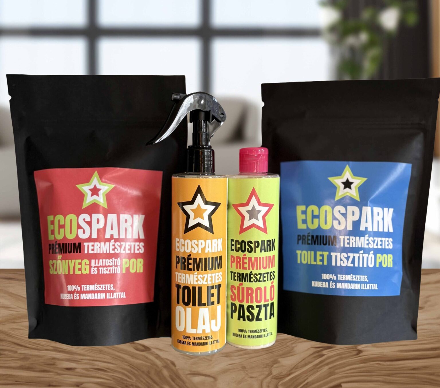 Ugrás a tartalomhozAz EcoSpark termékcsomag 4 100%-ban természetes háztartási tisztítószert.